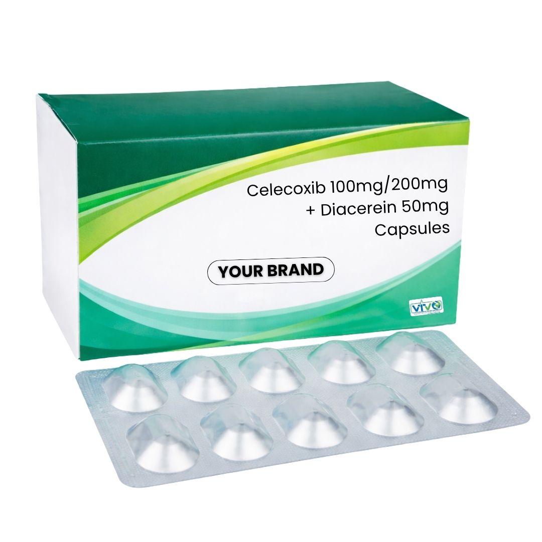 Celecoxib 100/200mg + Diacerein 50mg Capsules combine a fast-acting anti-inflammatory agent with a cartilage-supportive component. This formulation is commonly prescribed for the ongoing management of osteoarthritis, helping to reduce joint pain, inflammation, and stiffness - especially in conditions affecting the knee - while supporting improved mobility over time.