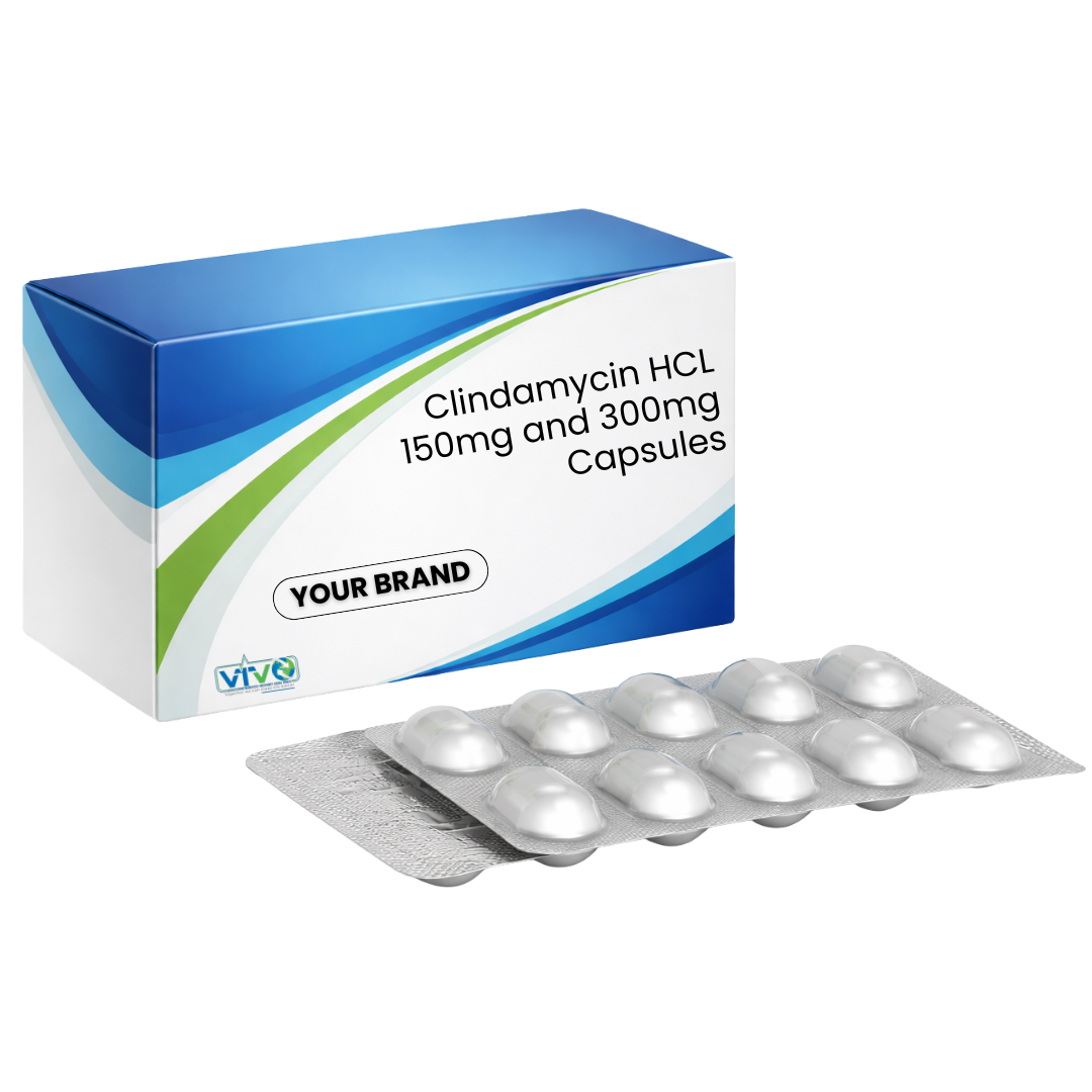 Clindamycin Hydrochloride 150mg and 300mg capsules are prescription antibiotics used to treat a variety of bacterial infections. They are effective against susceptible anaerobic bacteria, as well as certain streptococcal, staphylococcal, and pneumococcal infections. The medicine works by inhibiting bacterial protein synthesis, thereby stopping the growth and spread of bacteria.