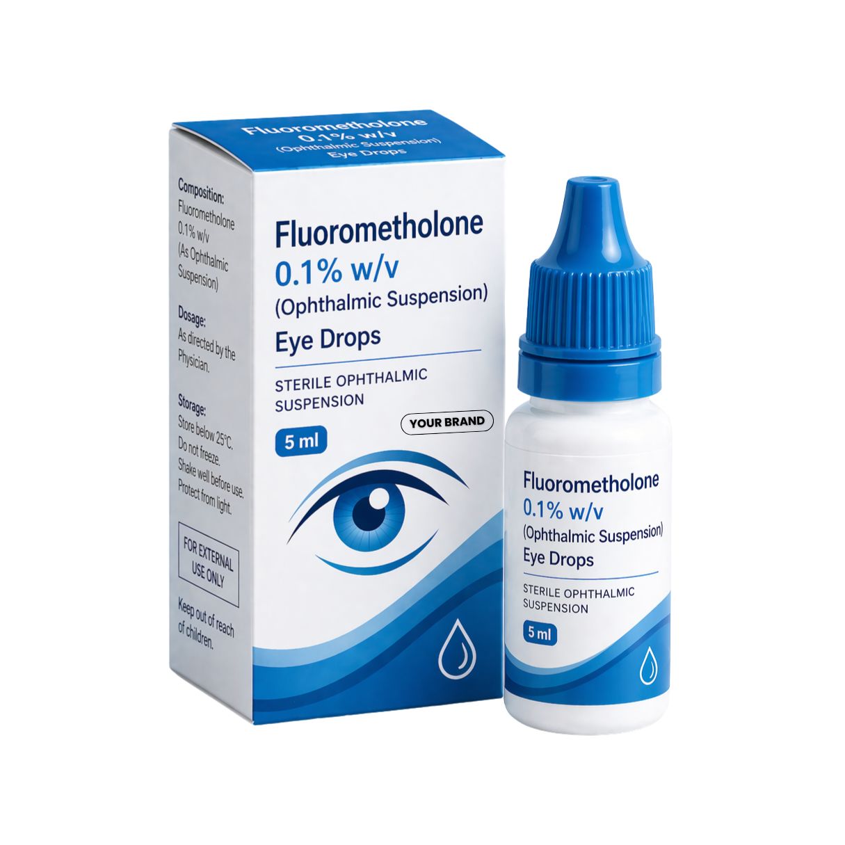 Fluorometholone 0.1% w/v Eye Drops (Ophthalmic Suspension) treats ocular inflammation by reducing swelling, redness, and itching associated with allergies, injury, or post-surgical conditions. It suppresses steroid-responsive inflammation in the conjunctiva, cornea, and anterior segment of the eye; therefore, it provides effective symptomatic relief. However, avoid prolonged use to minimize the risk of potential side effects.